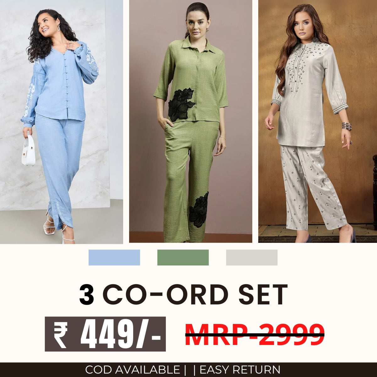 3 Co-ord Set Combo for Women | Stylish & Versatile | CD-10