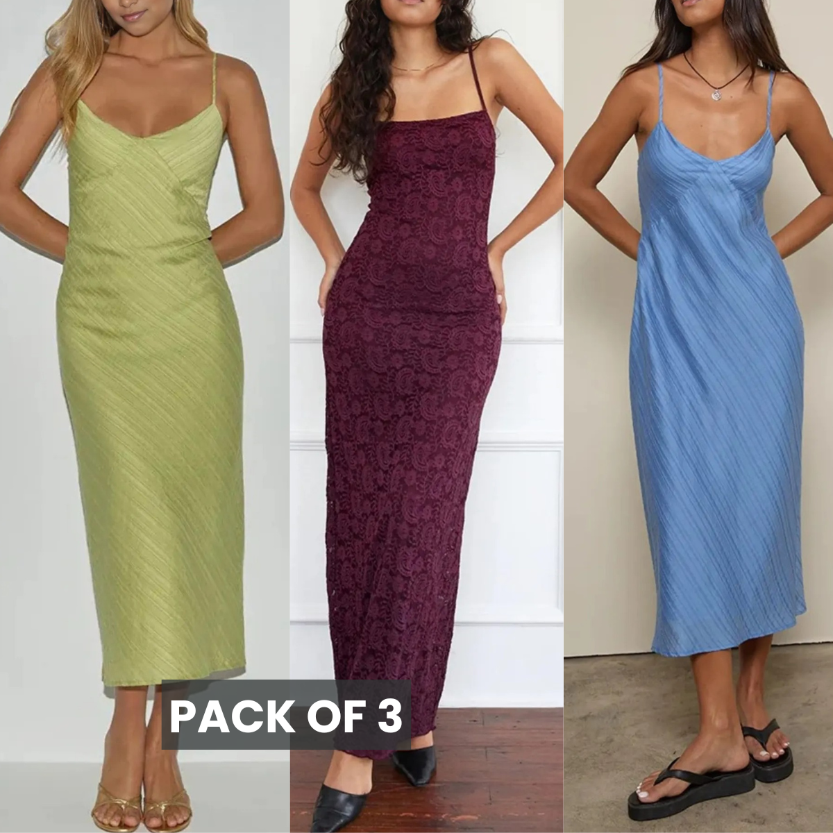 :Ā Get three stylish dresses in one purchase, offering great value for money.