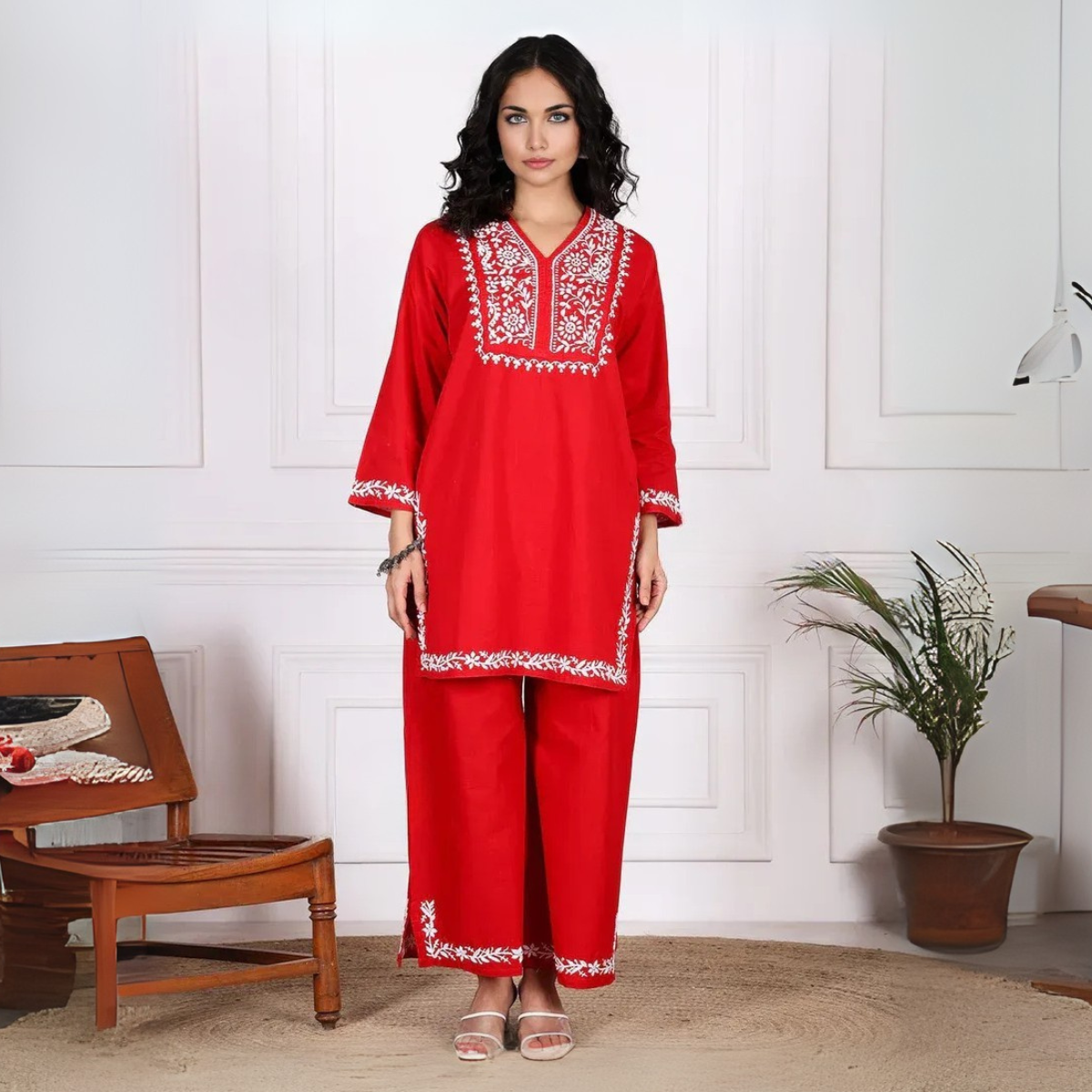 Enjoy the timeless elegance of traditional Indian craftsmanship with this set of 3 Chikankari (Chicken) Kurtas. Each kurta features delicate hand embroidery, showcasing intricate floral and geometric patterns that reflect the rich heritage of Lucknow.