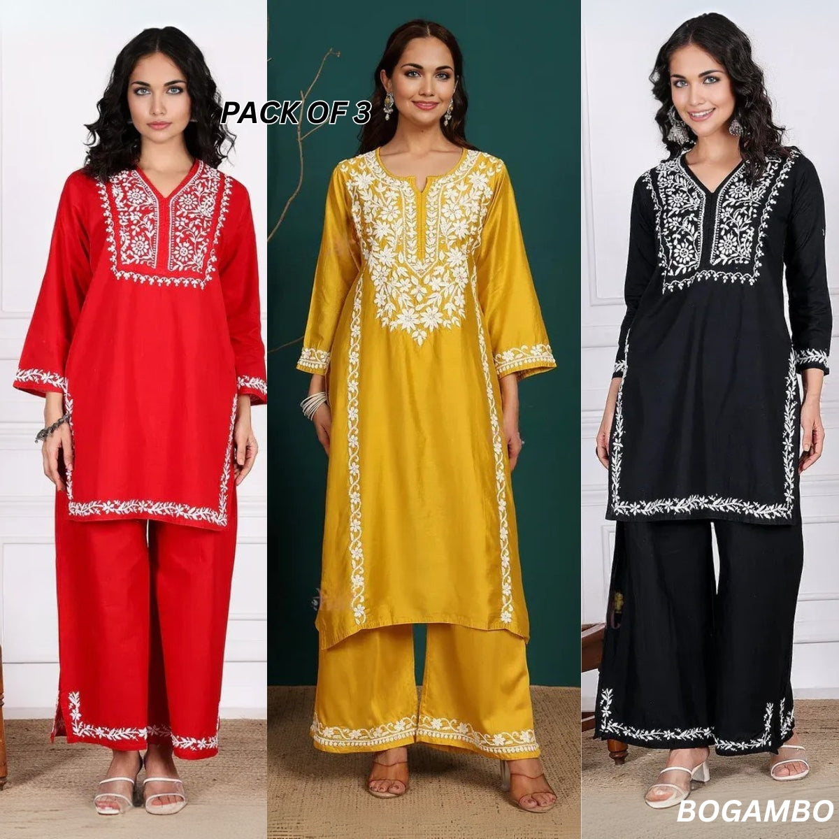 3 Combo Pack | Women Chikankari Work Kurti Set | Full Sleeves - CKW-03 3 Combo Pack | Women Chikankari Work Kurti Set | Full Sleeves - CKW-03
