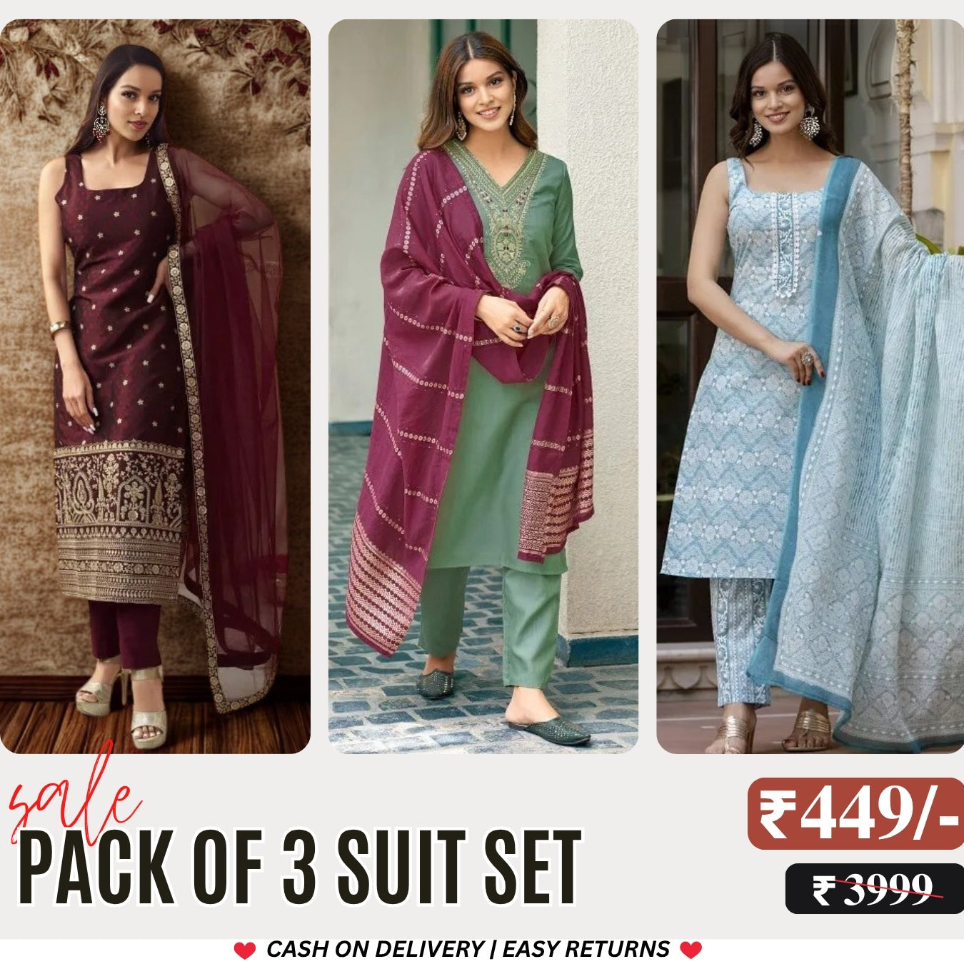 3 Combo Pack | Women’s Suit Set with Dupatta | S-03