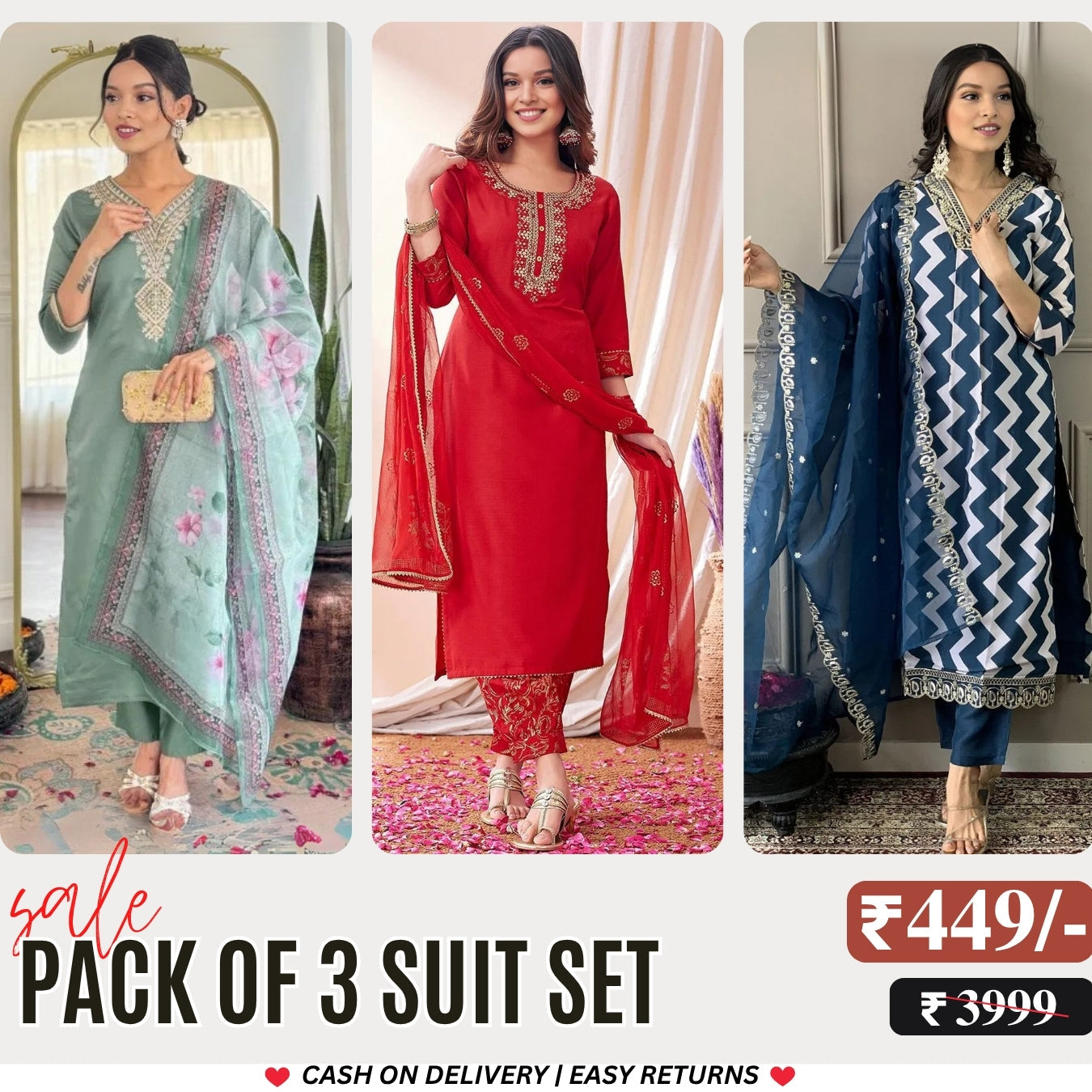 3 Combo Pack | Women’s Suit Set with Dupatta | S-10
