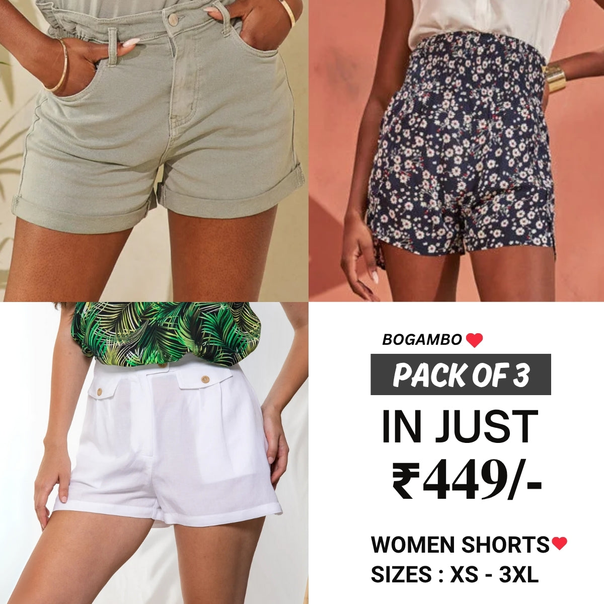 • Pack Of 3| Modern Llifestyles Regular Fit Cotton Shorts for Women |NS-03