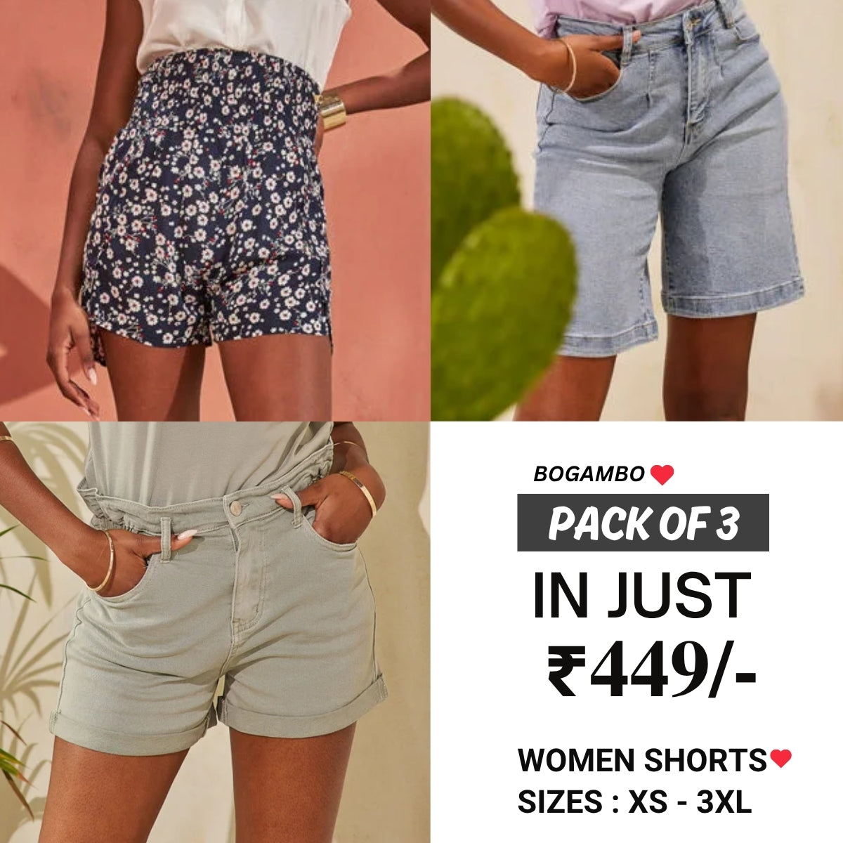 Pack Of 3| Modern Llifestyles Regular Fit Cotton Shorts for Women |NS-04