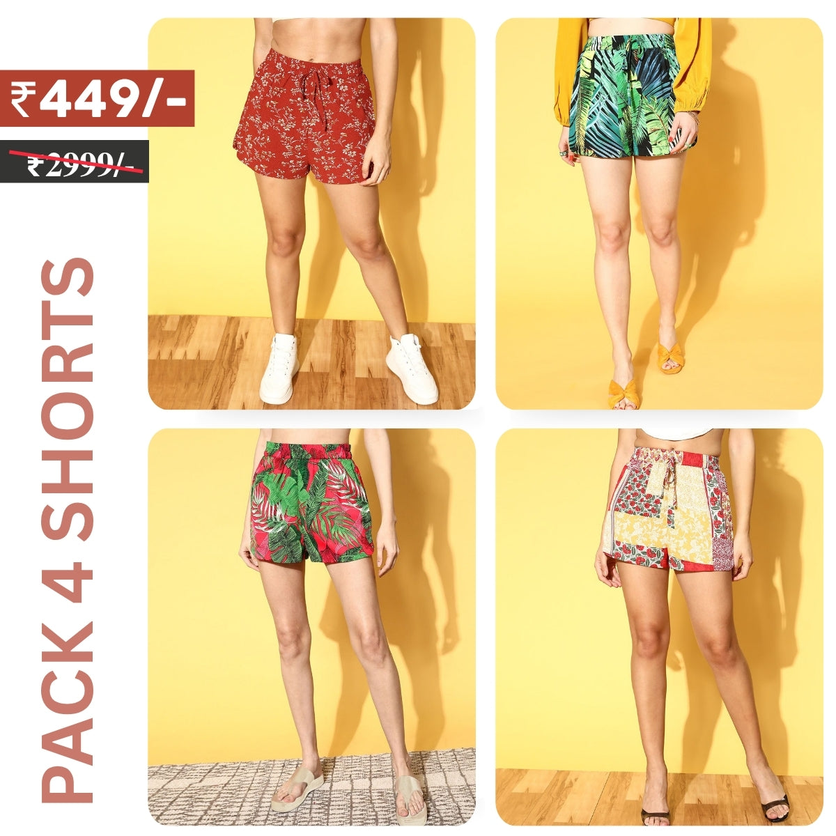 Pack Of 4 | Modern Llifestyles Regular Fit Cotton Shorts for Women | C-094 Pack Of 4 | Modern Llifestyles Regular Fit Cotton Shorts for Women | C-094