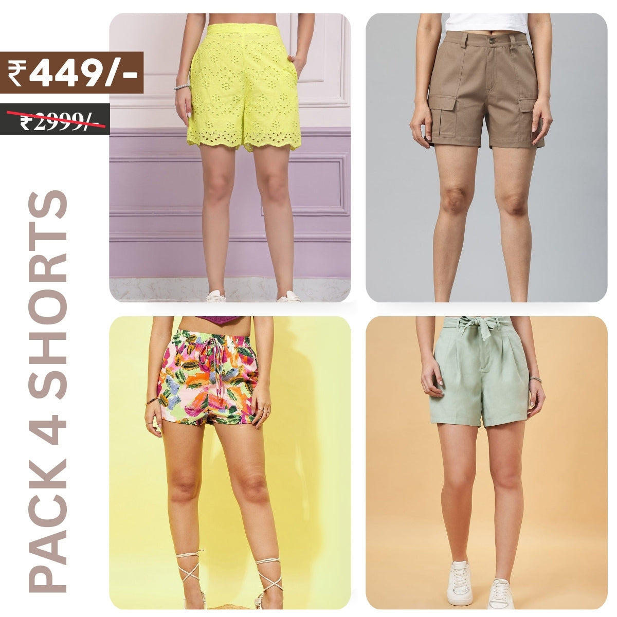 • Pack Of 4 | Modern Llifestyles Regular Fit Cotton Shorts for Women | C-099