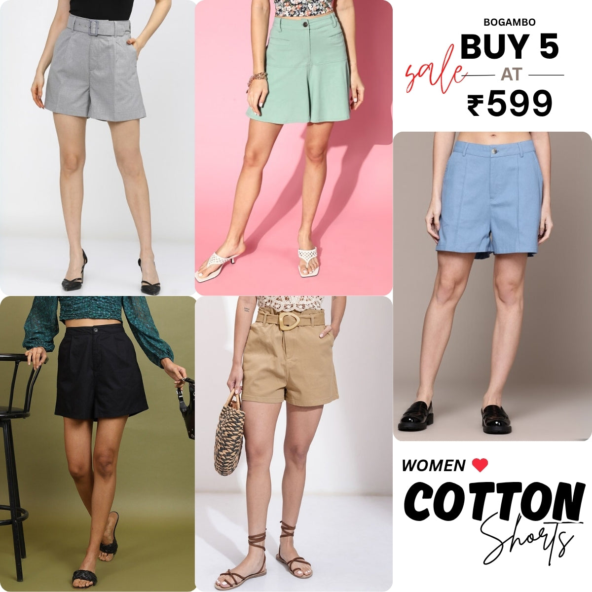 • Pack of 5 Women’s Cotton Shorts for Everyday Wear | Ultimate Comfort Combo | CS-10